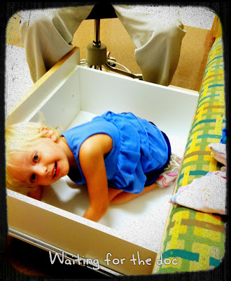 Then Emmy had a doctor's appointment with her orthopedic specialist (my kid has one leg longer than the other AND flat feet--fahreeeekeeee fun kid) and of course we both want to hear what he has to say about that. Plus it gave me the opportunity to put the Bean in a drawer instead of a corner wink wink...